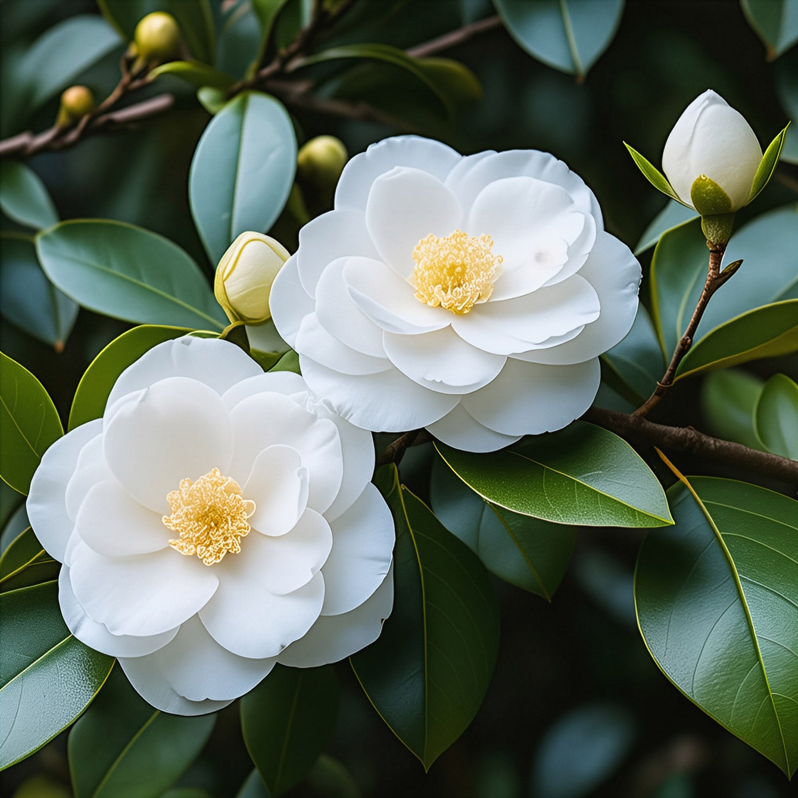 Daydream Believer is a refined white sasanqua camellia with delicate single blooms and a compact, upright form. Flowering in fall, it provides seasonal interest when few other plants are in bloom. Its glossy evergreen foliage adds structure and depth throughout the year.