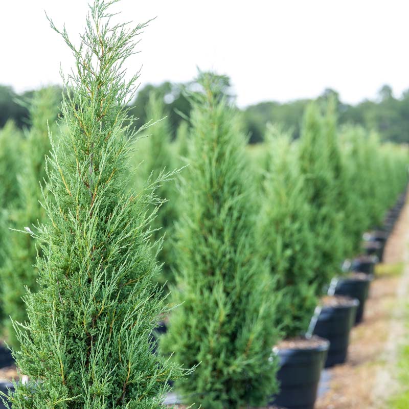 Taylor Juniper is a refined, columnar selection of Eastern Red Cedar, known for its soft blue-green foliage and tight, symmetrical habit. It provides a strong vertical accent in the landscape and is especially suited to modern designs, entry framing, or formal repetition.